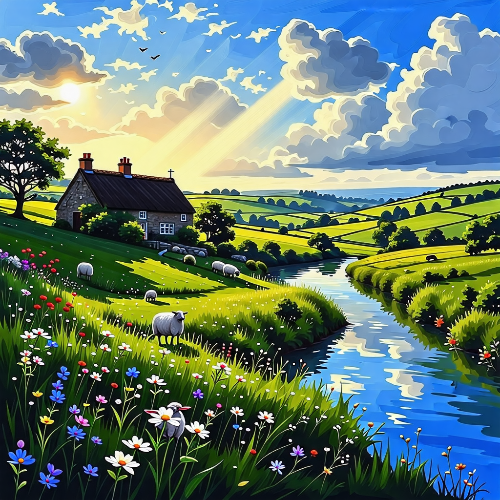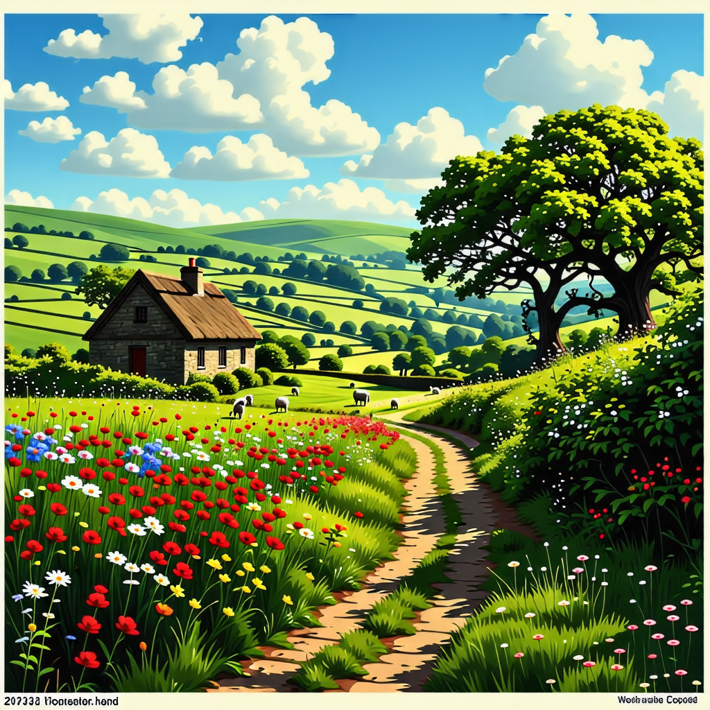 - 코츠월드의 전원 마을 탐방. 돌담과 초록 들판이 어우러진 봄 풍경을 즐길 수 있습니다.