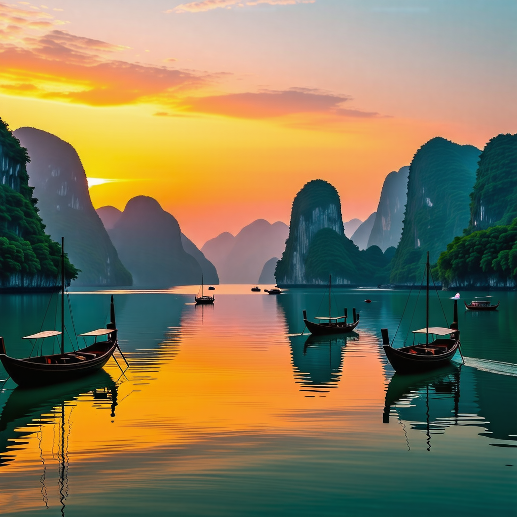 하롱베이에서의 일출과 일몰은 정말 장관입니다. 석회암 카르스트가 바다 위로 솟아오른 모습은 마치 그림 같은 풍경을 연출하며, 이곳에서의 멋진 사진은 모든 여행자에게 소중한 기억으로 남게 됩니다.